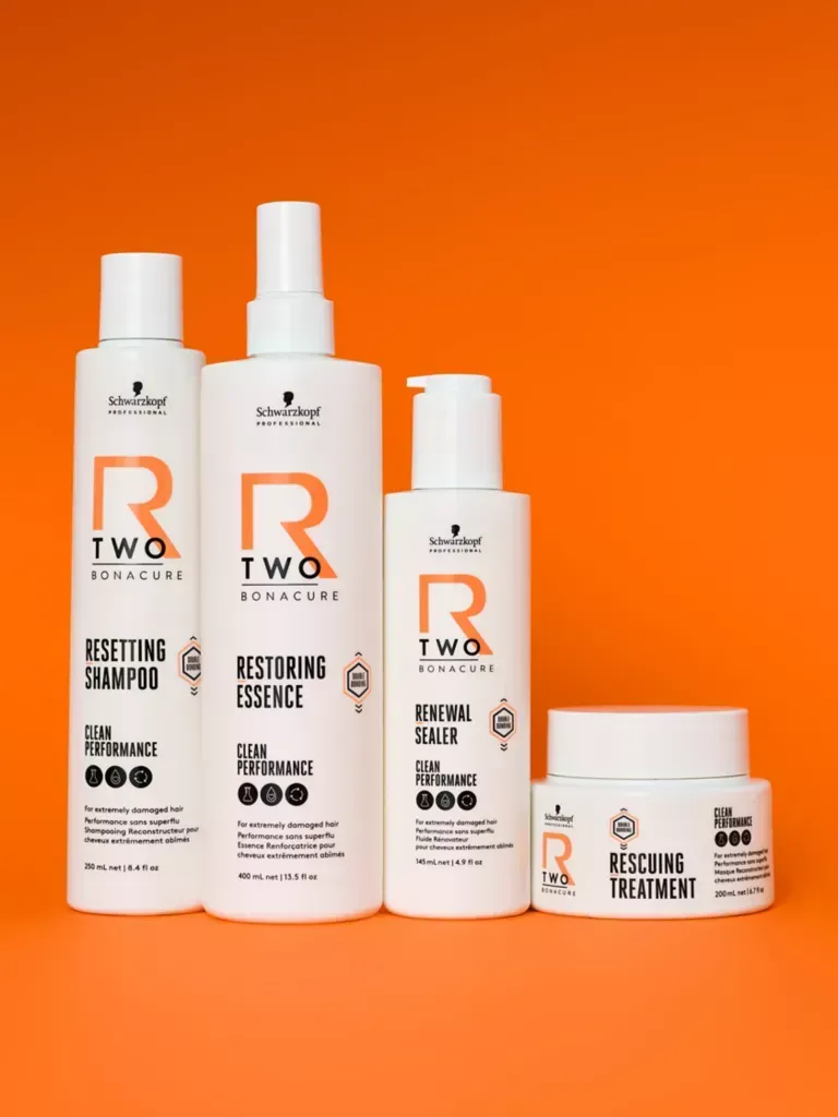 Bonacure R-TWO, angetrieben von der neuen transformativen Double Bonding-Technologie, ist eine Reihe von veganen und frei von Schadstoffen hergestellten Haarprodukten, die das Haar in nur ZWEI schnellen Schritten sofort reparieren und Dir ultimatives Vertrauen in Dein In-Salon-Serviceangebot und Deine Haarpflegeroutinen geben.